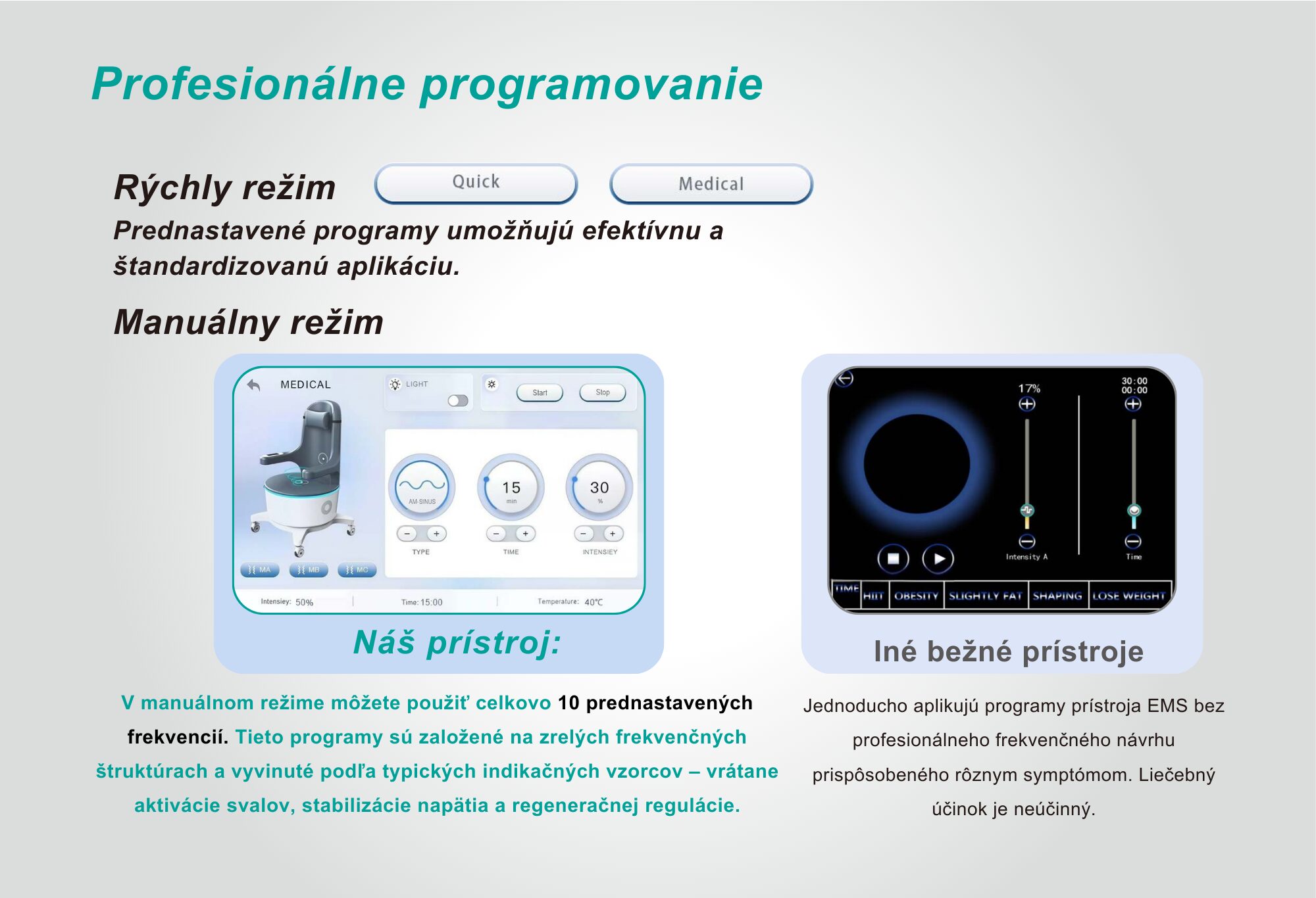 - pre osoby s kovovými implantátmi