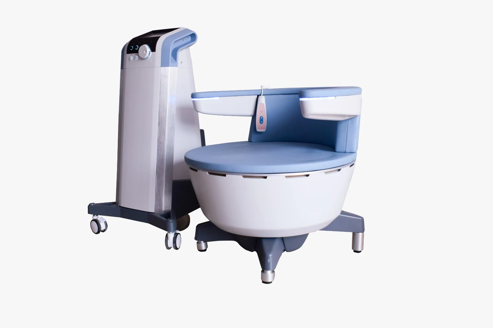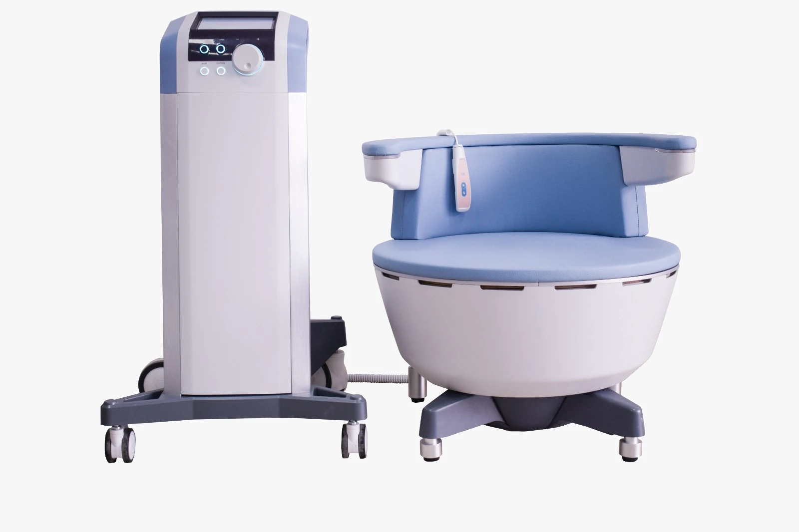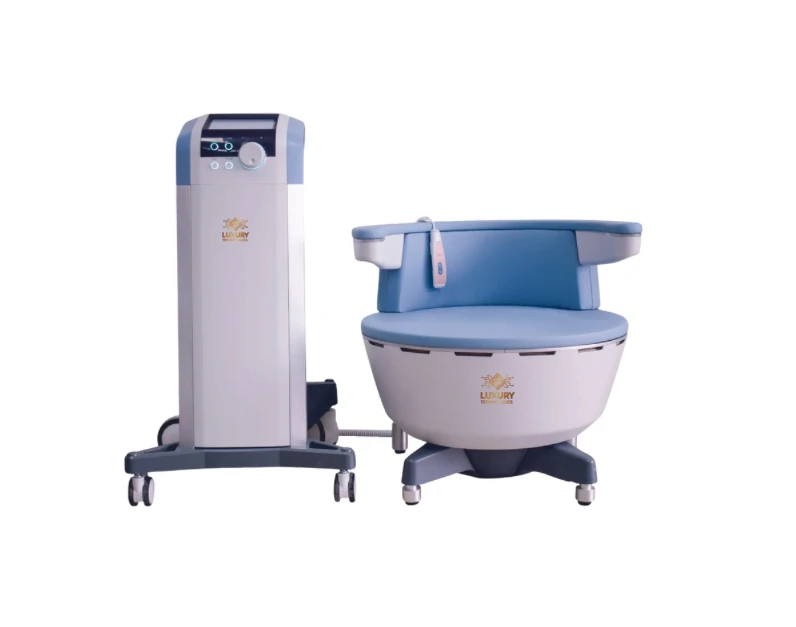 Elektromagnetické kreslo Luxury Technologies pre posilnenie svalstva v oblasti panvového dna, využíva technológiu vysokovýkonného sústredného elektromagnetického poľa na stimuláciu hlbokých svalov a obnovenie nervovo-svalovej kontroly.